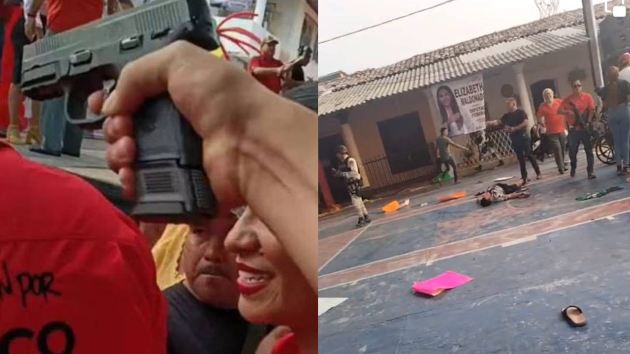En el video se alcanza a ver una mano sosteniendo una pistola que apunta a la cabeza del candidato Alfredo Cabrera y segundo después se escuchan los disparos y el caos de la multitud.